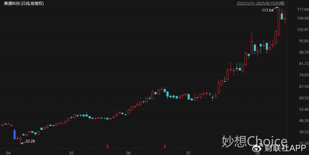 主营高速通讯连接器及其组件和汽车连接器及其组件的鼎通科技股价自4月低点迄今累计最大涨幅263%。鼎通科技8月11日在业绩说明会上表示,公司二季度液冷产品已小批量出货,并得到客户通知,对液冷进行量产模具的开发。公司已在为液冷的量产做生产上的准备,预计年底或者2026年初将开始进行量产。公司的液冷产品主要用于对连接器和光模块信号传递接触面进行散热处理,服务器和数据中心均可以适用。公司生产的液冷产品主要是配套Cage供货给客户。