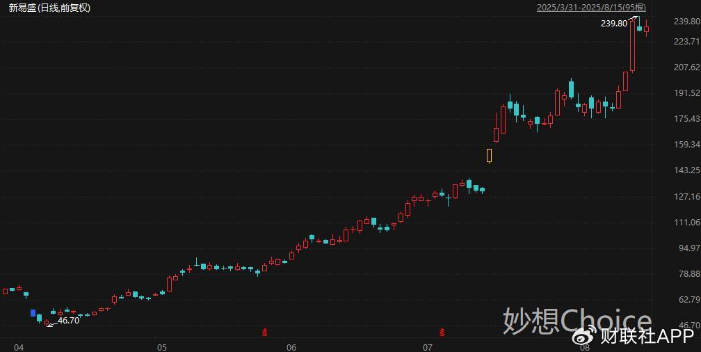 光模块龙头新易盛周四盘中再度创下历史新高,最高触及239.8元/股,拉长时间来看,其股价自4月低点迄今累计最大涨幅413%。新易盛7月16日在电话会议上表示,公司在2025年上半年800G产品出货量和销售占比保持持续提升,400G产品也在持续出货。从目前的市场需求及客户指引来看,预计2025年下半年起,1.6T产品将逐渐起量。公司泰国工厂二期已于2025年初投产,目前处于产能持续扩充阶段。公司预计今年下半年到明年行业将持续保持高景气度。